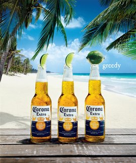 CORONA EXTRA 是墨西哥莫德罗啤酒公司的拳头产品,因其独特的透明瓶包装以及饮用时添加白柠檬片的特别风味,在美国一度深受时尚青年的青睐。